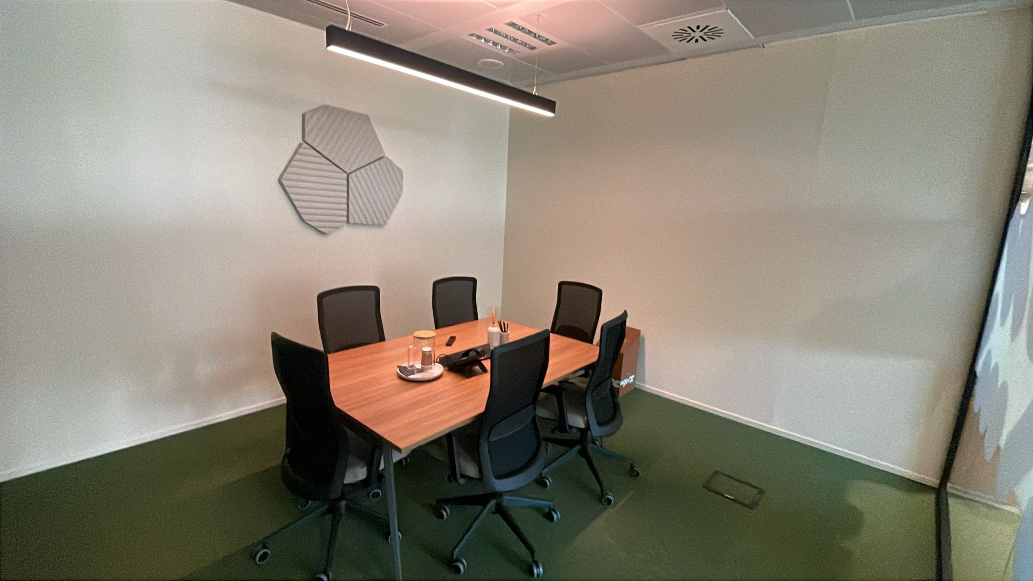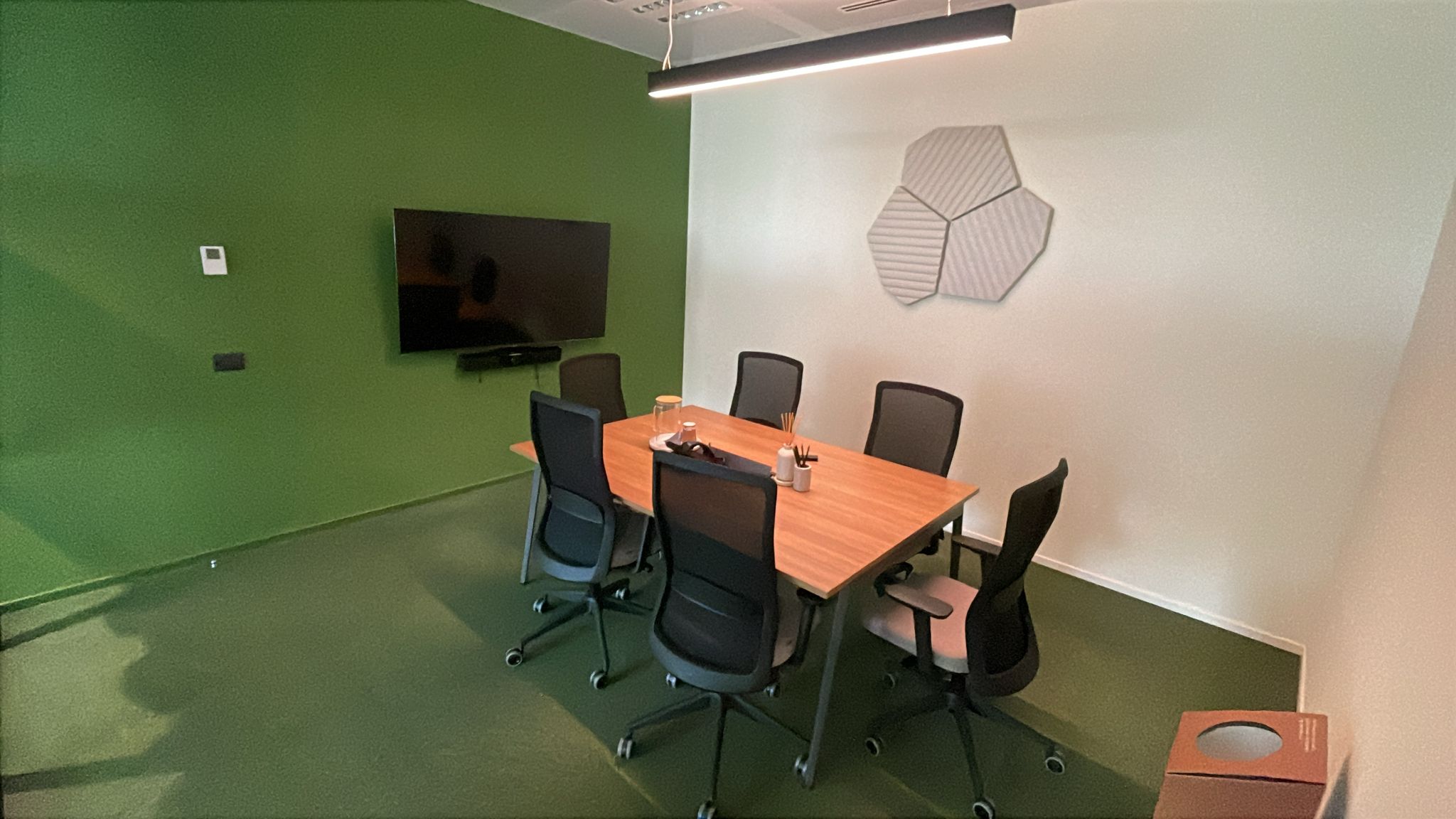 Equipped with a screen and stable connection for hybrid sessions and videoconferencing. Whiteboard available upon request. Bookable at €35/hour, with digital badge access and reception support for guest check-in.