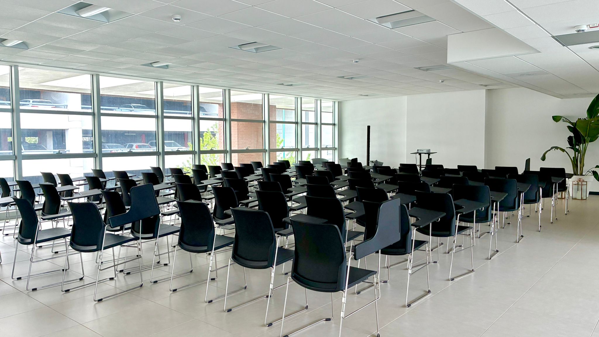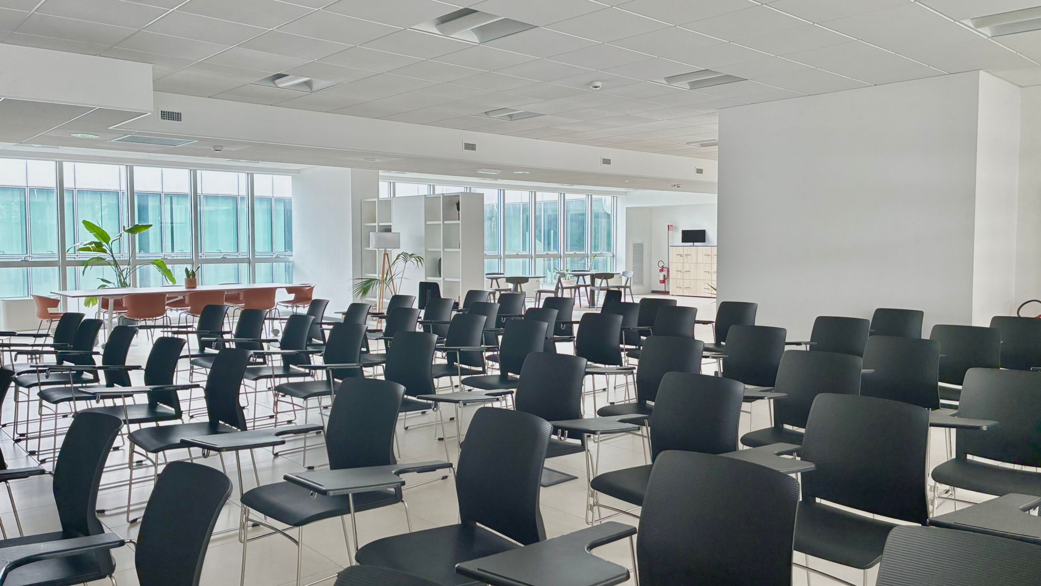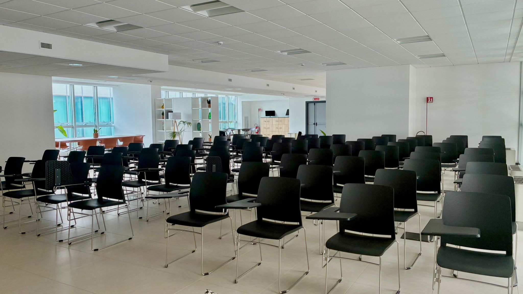 A flexible and modular space that can host up to 75 people seated in conference setup. Thanks to its versatility, it is the ideal solution for talks, events, training activities, workshops, labs and team-building sessions, with the possibility to create dedicated areas for networking and social moments within the same space.